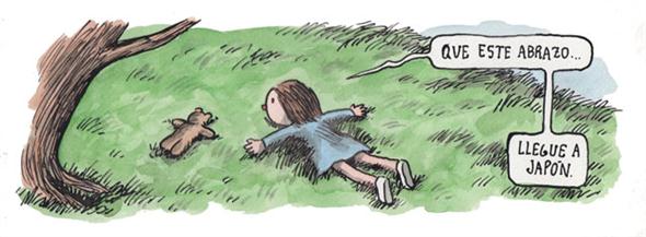 O artista Liniers publicou uma tirinha comovente no domingo, no jornal La Nacion, curiosamente o mesmo onde fui capa do caderno de Espectáculos no dia do terremoto…