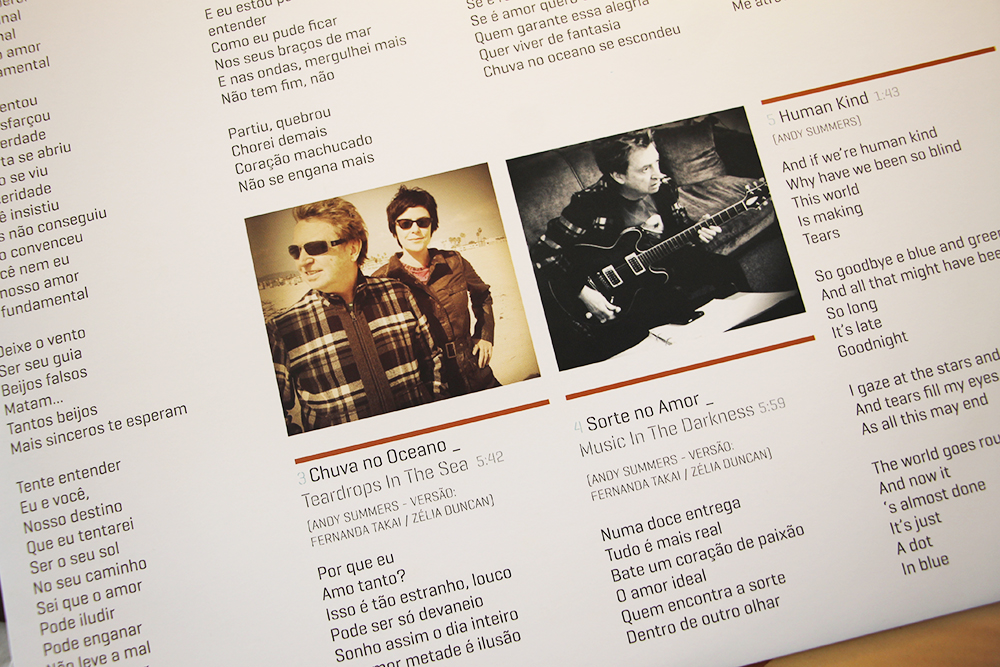 ano: 2012 | LADO A: 1. Fundamental | 2. Pra Não Esquecer | 3. Chuva No Oceano | 4. Sorte no Amor | 5. Human Kind | LADO B: 1. No Mesmo Lugar | 2. Falling From The Blue | 3. You Light My Dark | 4. Smile And Blue Sky Me